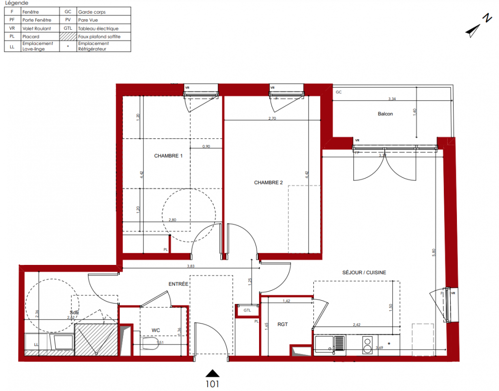 240 780€ Appt. T3 63m2 0-RDC