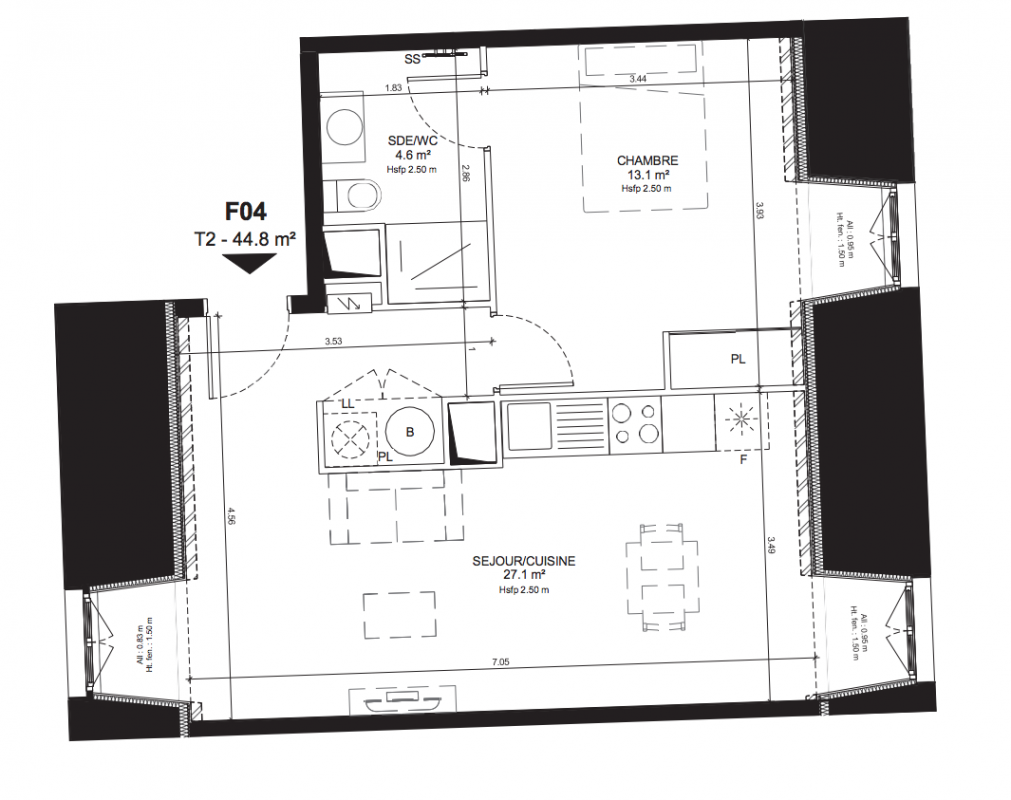 363 100€ Appt. T2 47.1m2 1er