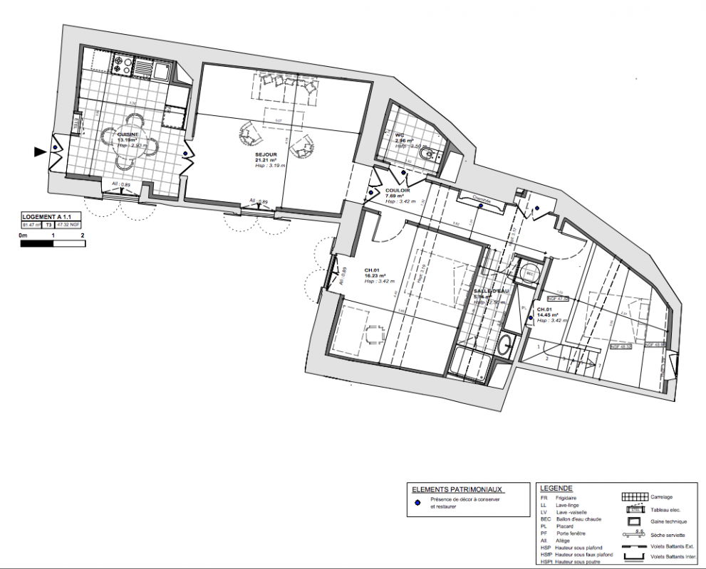Les duplex et appartements du projet « Carré Mithras » sont répartis sur un bâtiment de 4 étages. Globalement, on répertorie quinze T3, trois T2 et également trois T1.