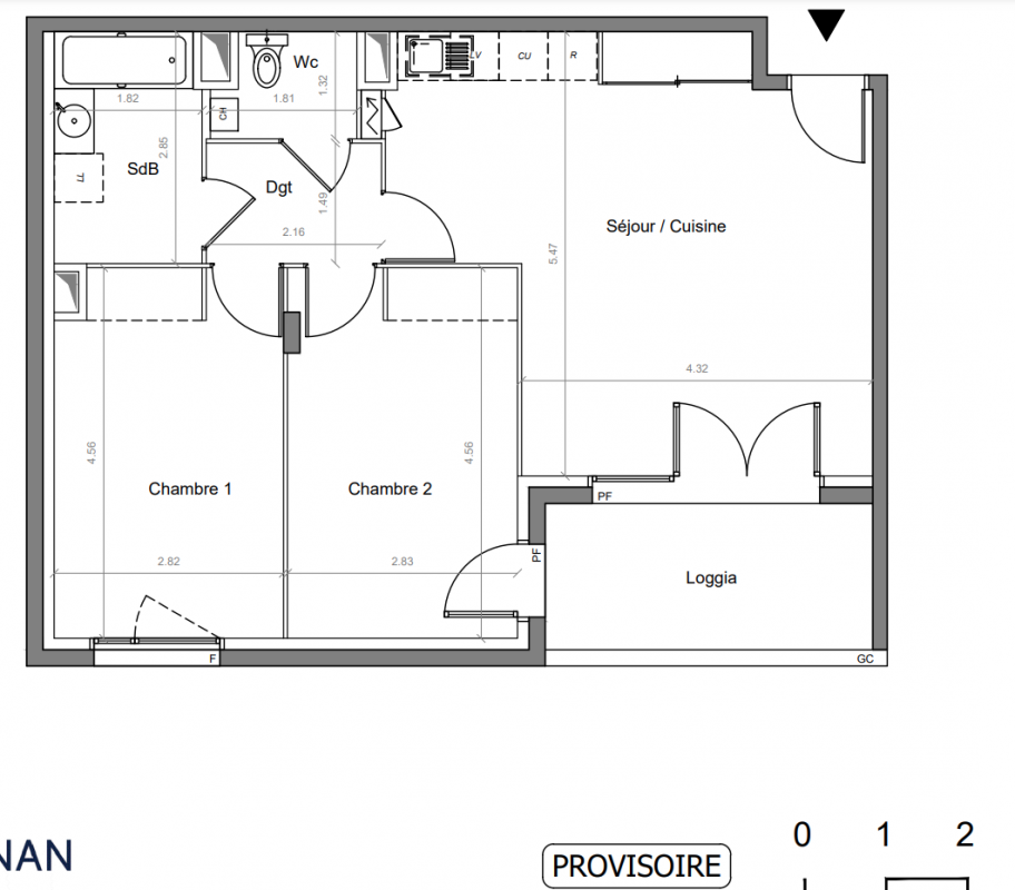 232 000€ Appt. T3 58.37m2 0-RDC