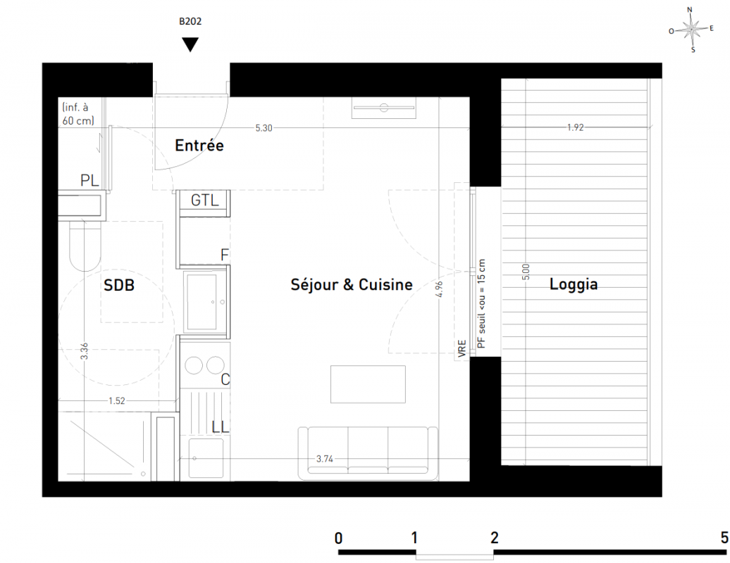 163 999€ Appt. Studio 25m2 4ème