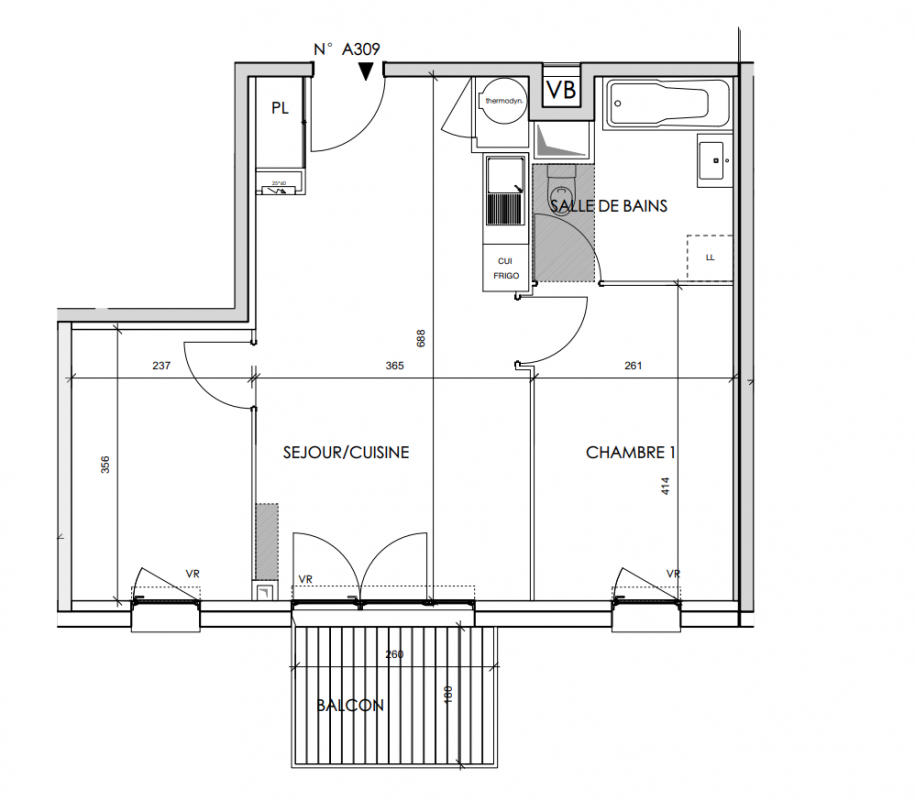 245 346€ Appt. T3 56.01m2 4ème