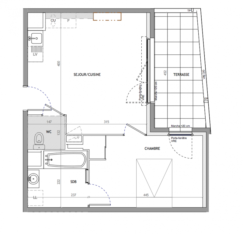 212 000€ Appt. T2 39.3m2 1er