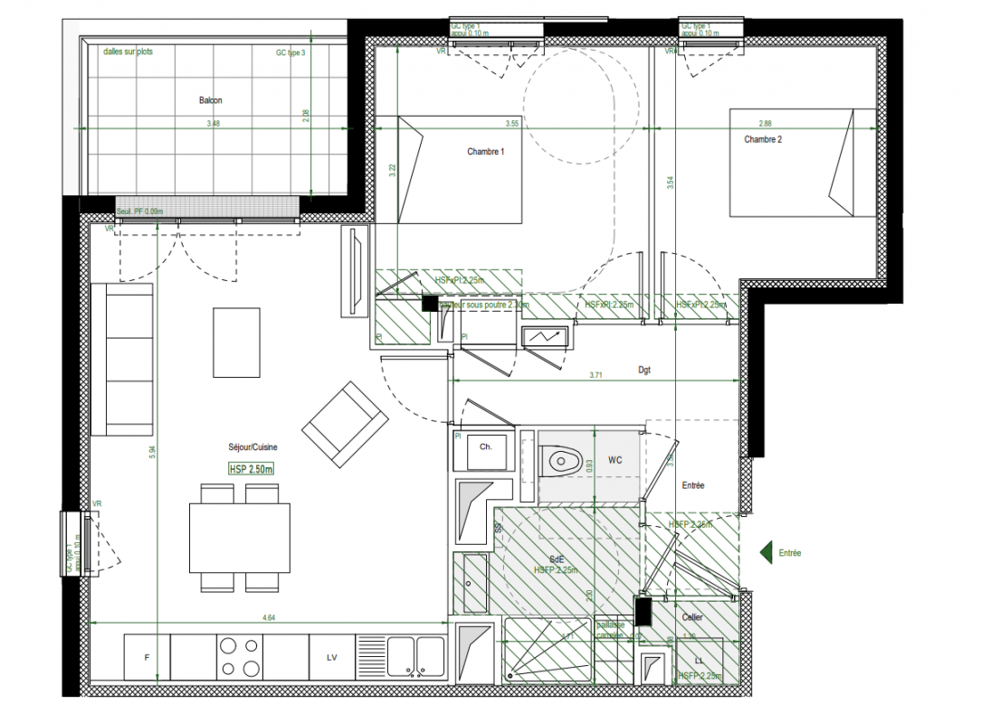 294 597€ Appt. - 62.5m2 1er
