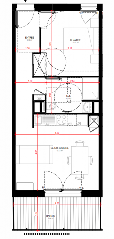 189 000€ Appt. T2 45.17m2 1er