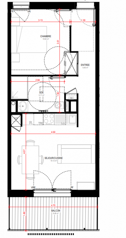 189 000€ Appt. T2 45.17m2 1er