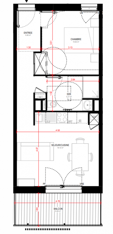 189 000€ Appt. T2 45.17m2 1er