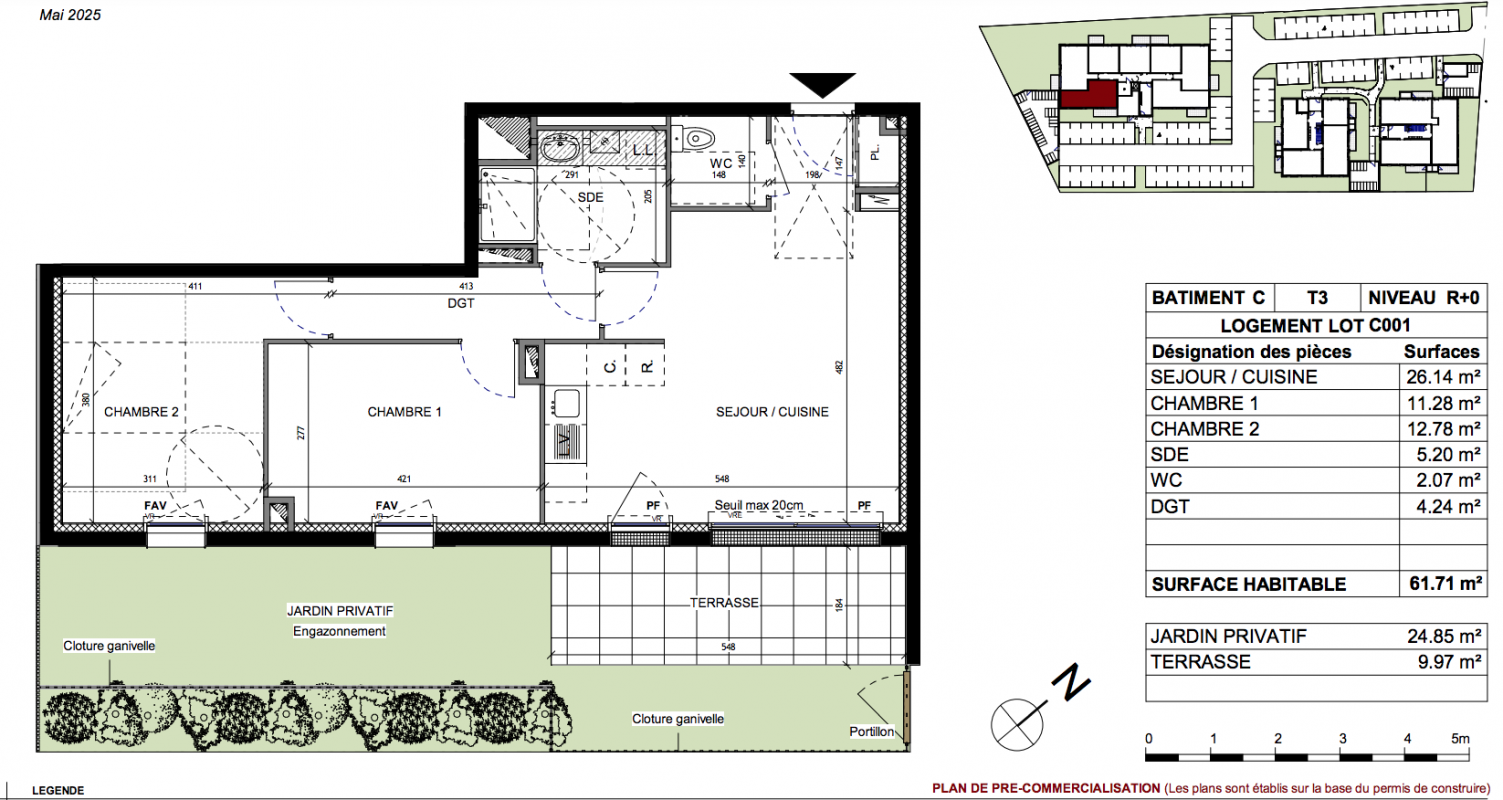 215 900€ Appt. T3 62.25m2 0-RDC