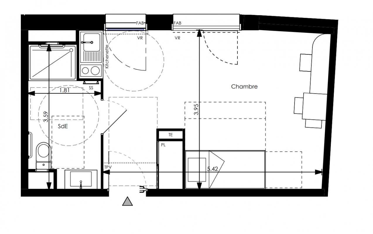 149 364€ Appt. Studio 23.63m2 0-RDC